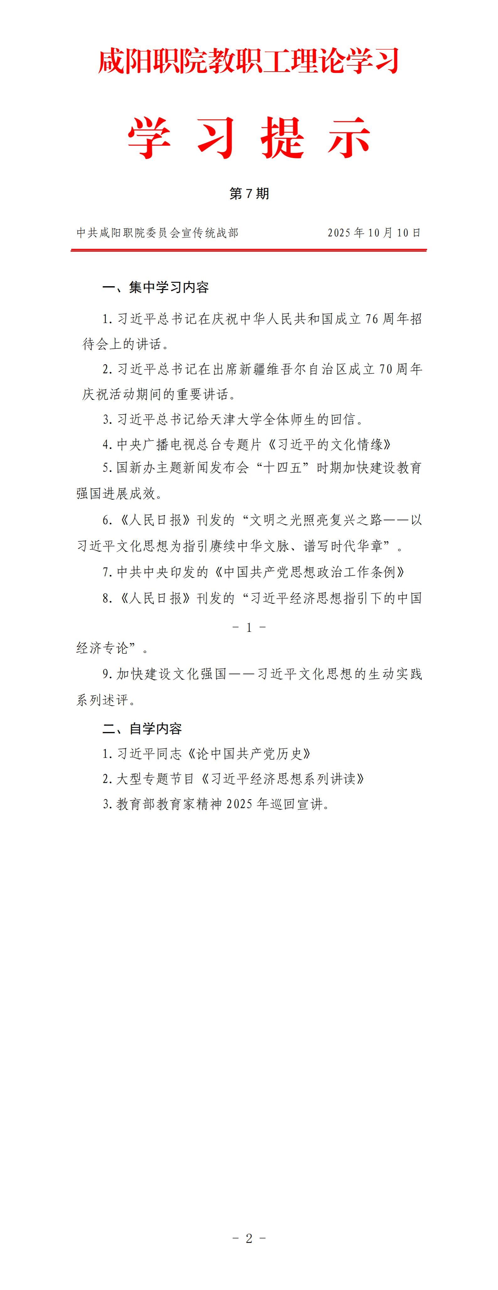 咸阳职院教职工理论学习提示(第7期)
