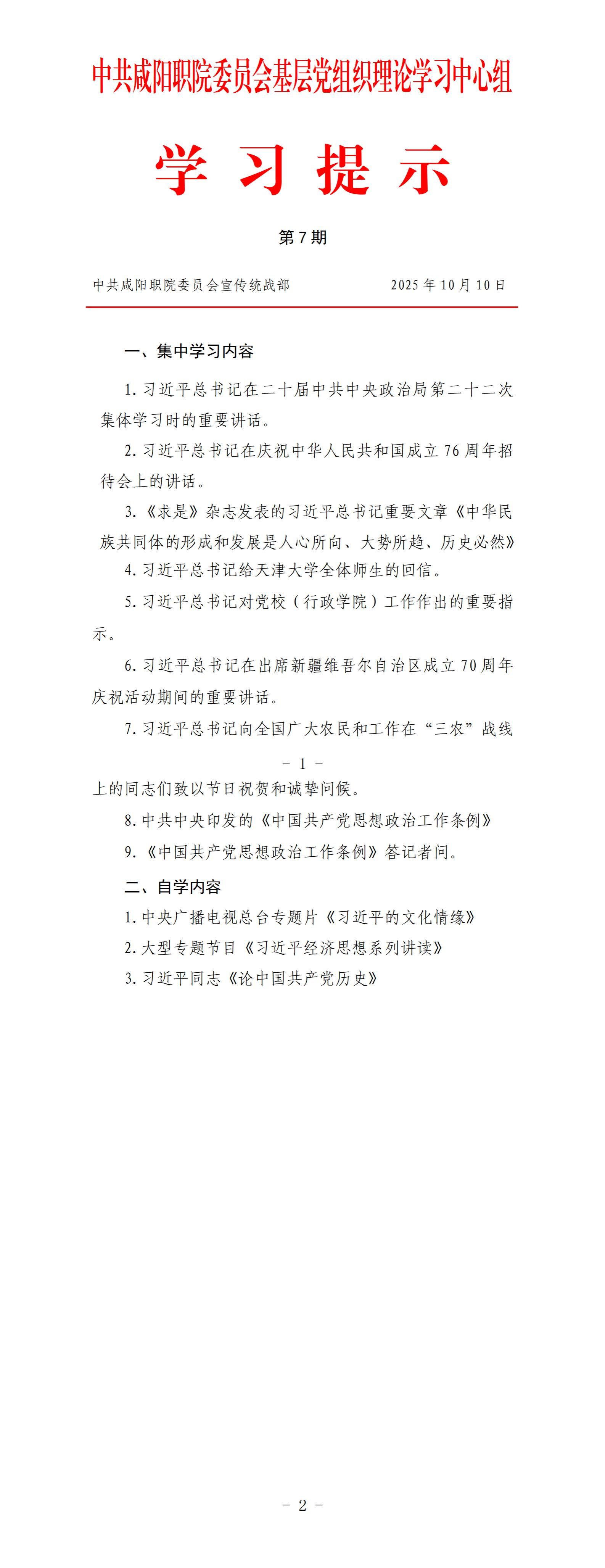 中共咸阳职院委员会基层党组织理论学习中心组学习提示(2025年第7期)