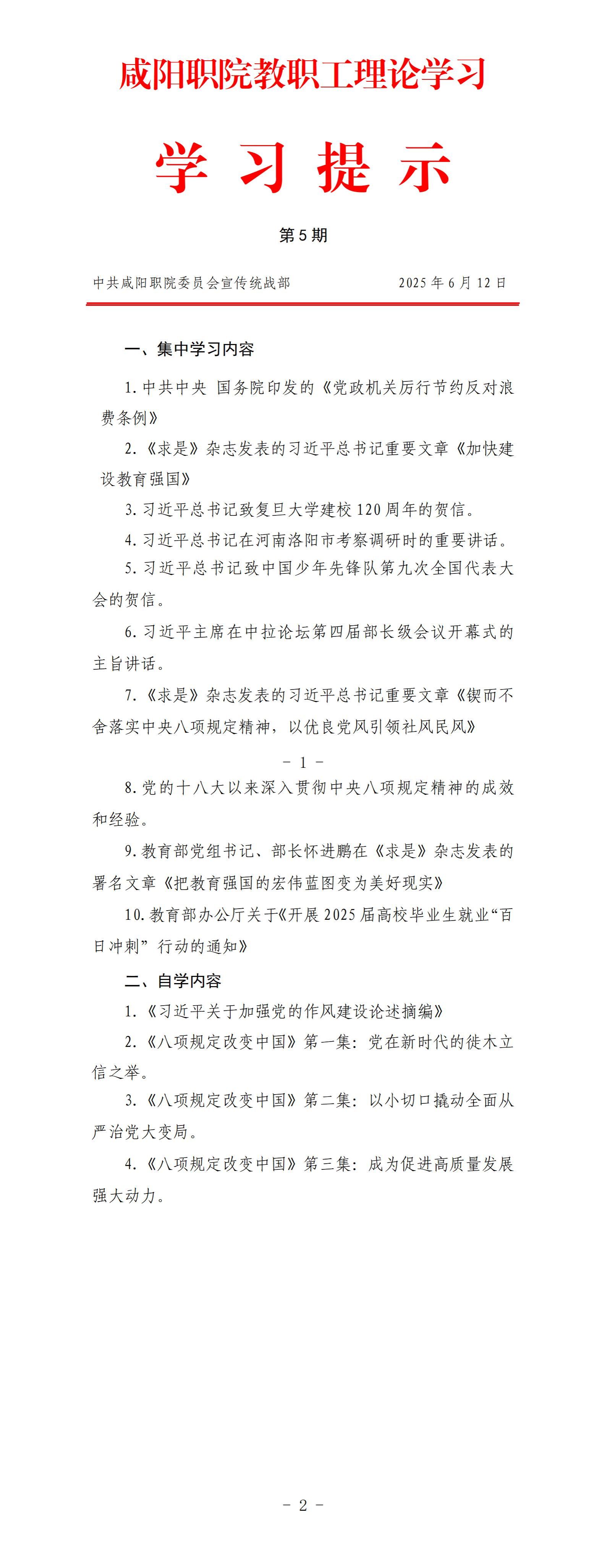 咸阳职院教职工理论学习学习提示(2025年第5期)